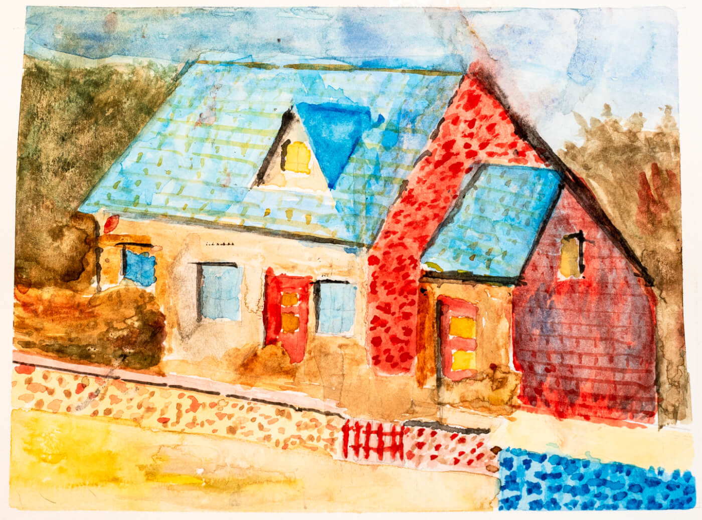 And then there’s his art. He took up watercolors a few years ago, when the pandemic set in. His engineer’s brain is on full display in each of these works. He’s building these structures with the eye of a trained builder. He’s also doing it with his left hand, which he’s learned to use more skillfully since he lost the use of his right.