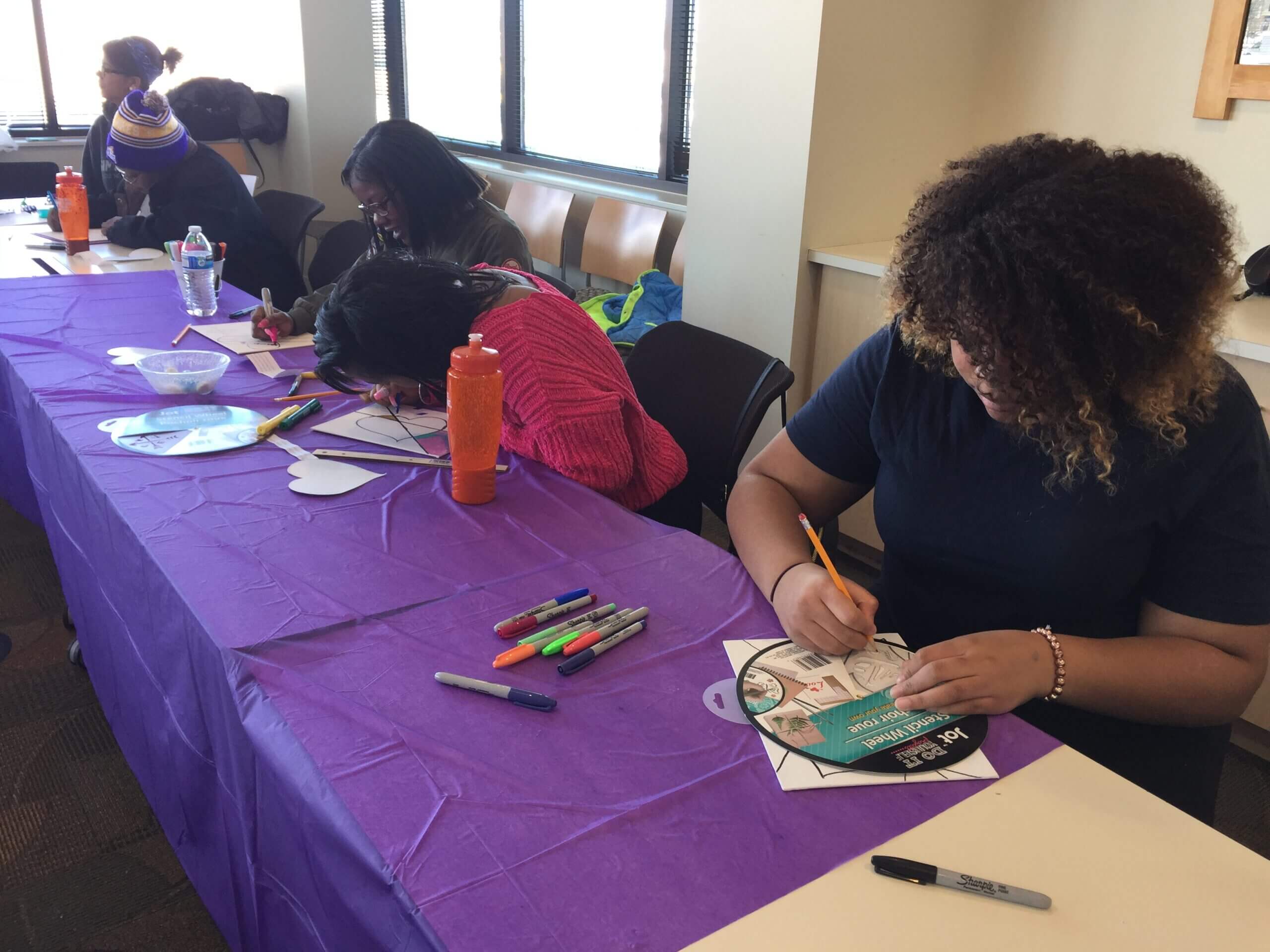 The inaugural Mamas’ Day of Healing, an all-day retreat for parents in Simpson’s family supportive housing program took place on February 28, 2019. Fourteen moms, one father, and twenty children ages three months to eight years, gathered at the Wilder Foundation for relaxation, education, and fun. It was a day for parents to focus on themselves. Speakers focused on prenatal/maternal health and building resilience. Small group sessions encouraged creativity and healing through vision boards, journaling, yoga, and visual arts. Throughout the day, participants connected with other parents by sharing a meal together, offering support, and even singing karaoke.